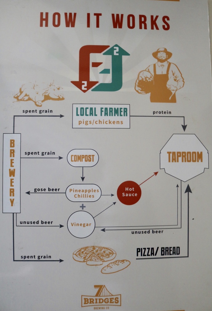 特別おいしいビールを作るために栽培されたチリやパイナップル、季節の野菜に使われた穀物は、近隣の農場にいる80匹を超える雄豚や100匹の鶏の餌に用いられます。」