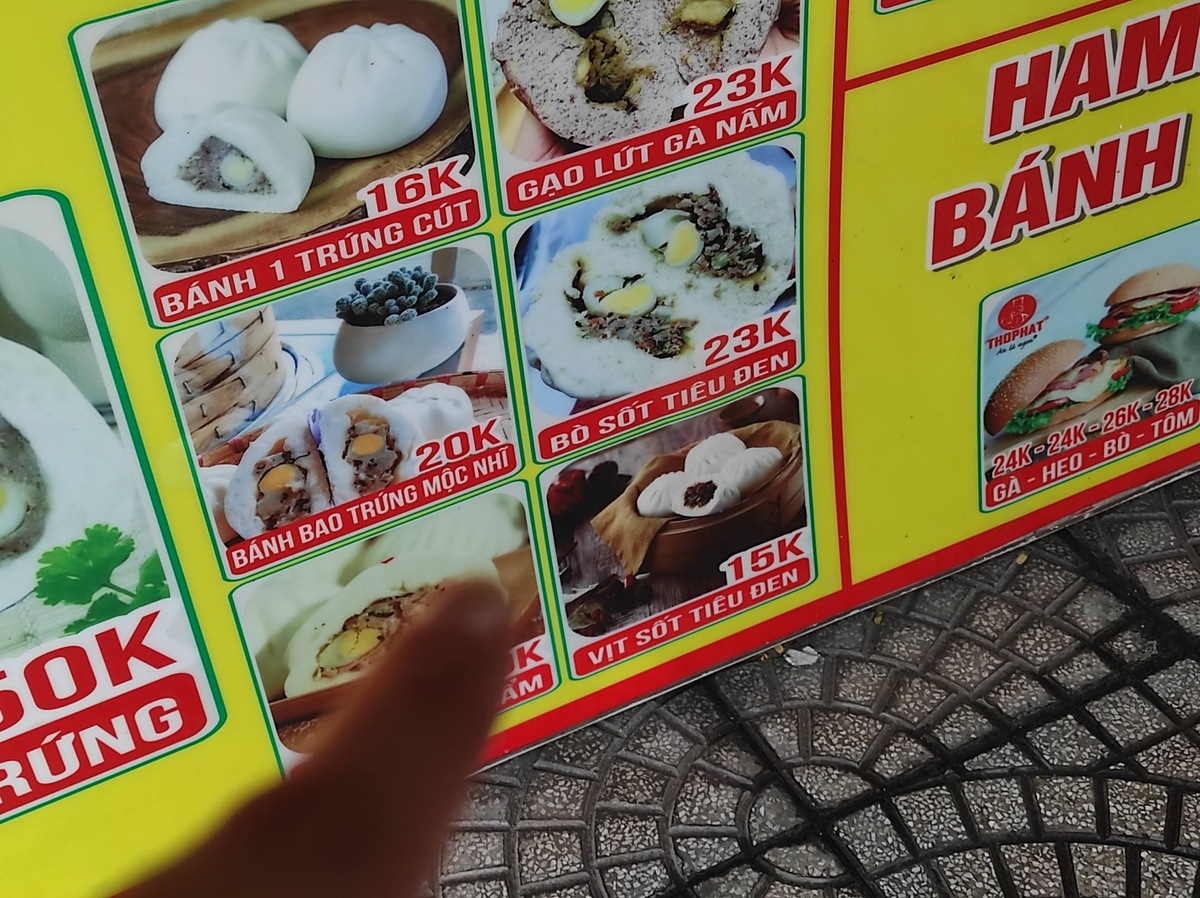 Vịtはアヒル、sốt tiêu đenはブラックペッパーソースを指します、メニューでは肉まんを指すBánh baoは省略されています。