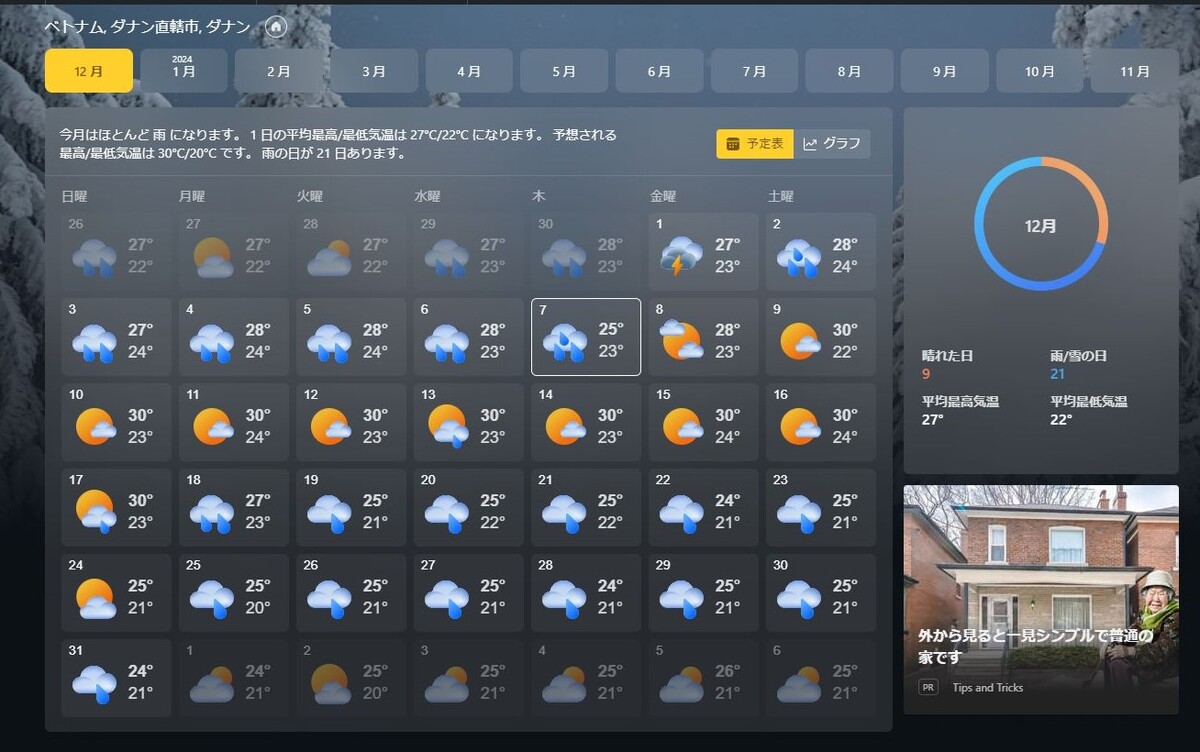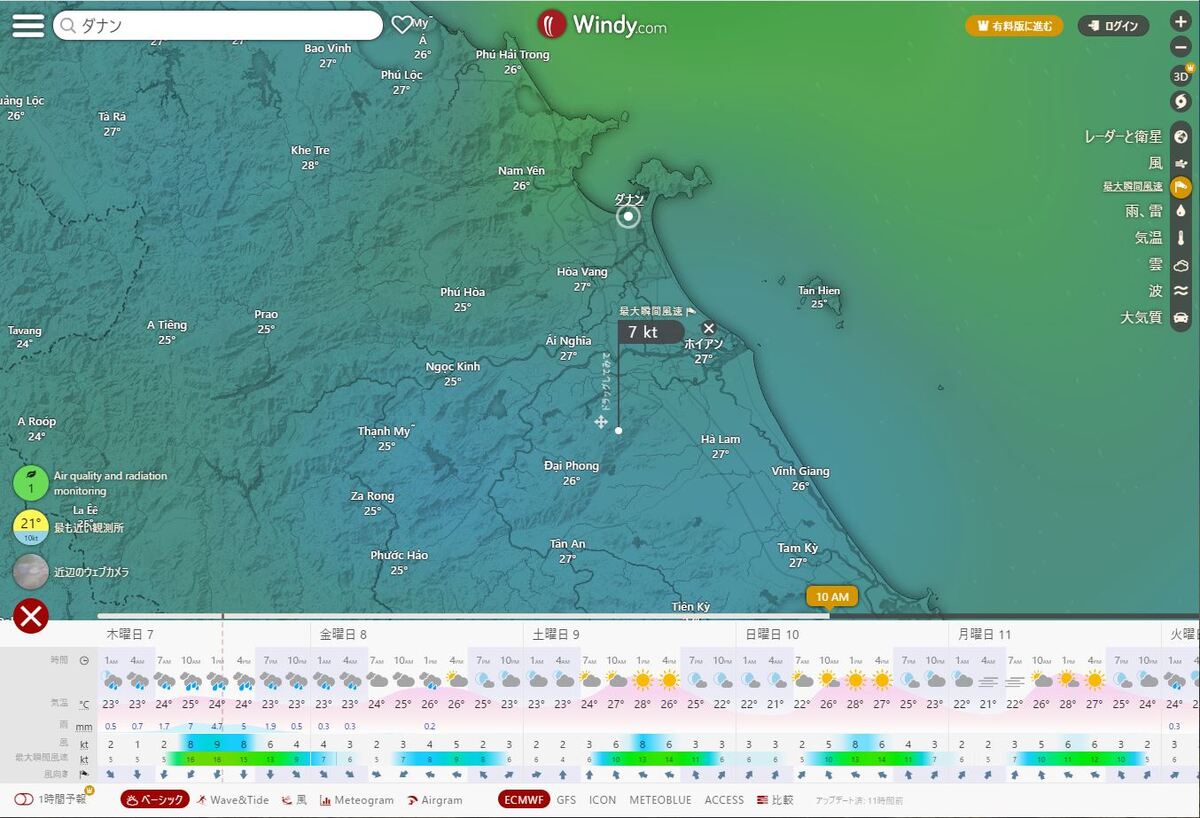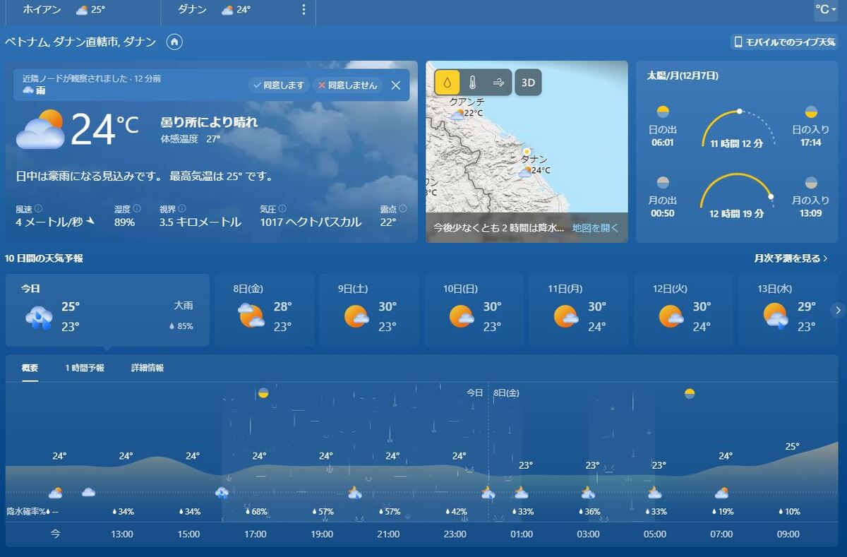特に、お天気が読みずらい雨季のダナンでは、以下の項目を満たした天気予報を確認するのがおすすめです。