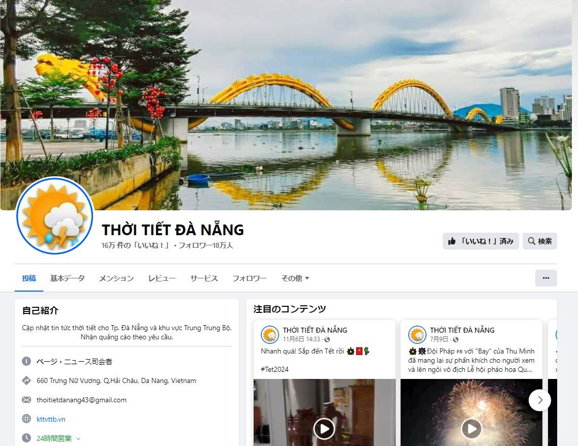 ダナンの天気を確認したい場合は、中央水文気象観測所(Đài Khí tượng Thủy văn khu vực Trung Trung Bộ)が運営する「THỜI TIẾT ĐÀ NẴNG:ダナンの天気」というFacebookページが人気。