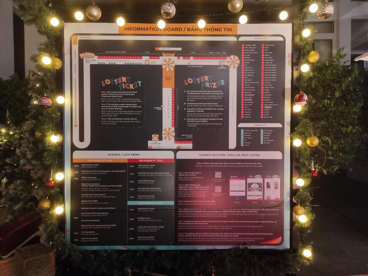今年のクリスマスマーケットは、DaNang 365 、AmCham(在ベトナムアメリカ商工会議所)、AusCham(在ベトナムオーストラリア商工会議所)、Spanish Cham(在ベトナムスペイン商工会議所)、ダナン観光プロモーションセンター、プレミアビレッジダナンリゾートのよって共同開催。