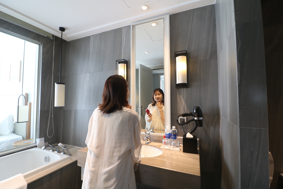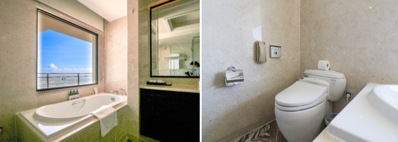 室内には全身鏡、シャワー、お手洗い(2)、バスタブ、デスク&テーブル、ソファ、カウチ、があり自宅のように過ごすことができるお部屋です。