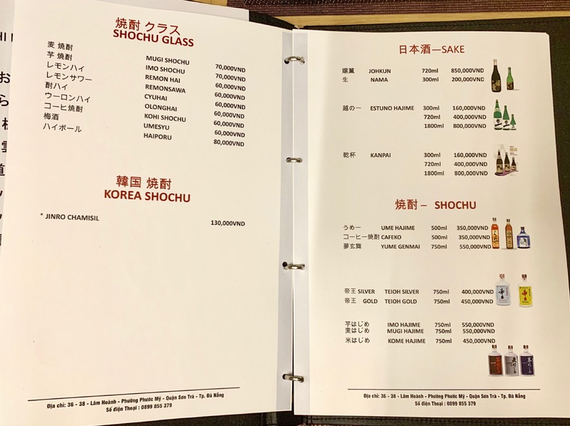 お酒はベトナムのものから日本のものまで、値段はベトナムのものはローカルのお店と変わらない手ごろな値段。