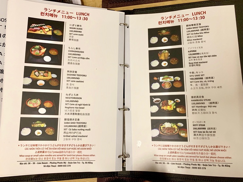 ランチメニューは握りとお味噌汁付きで160.000VND(約750円)、ビーフステーキセットは200.000VND(約950円)食べることができとてもお得ですよ!