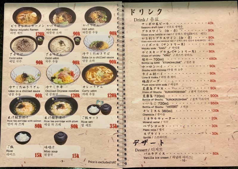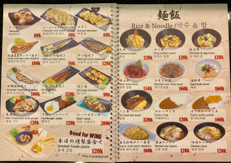 価格はお一人でしたら120,000VND(約600円)~、飲み会の場合はお一人当たり大体500,000VND(約2500円)~お楽しみいただける日常使いしやすい日本食レストランです。