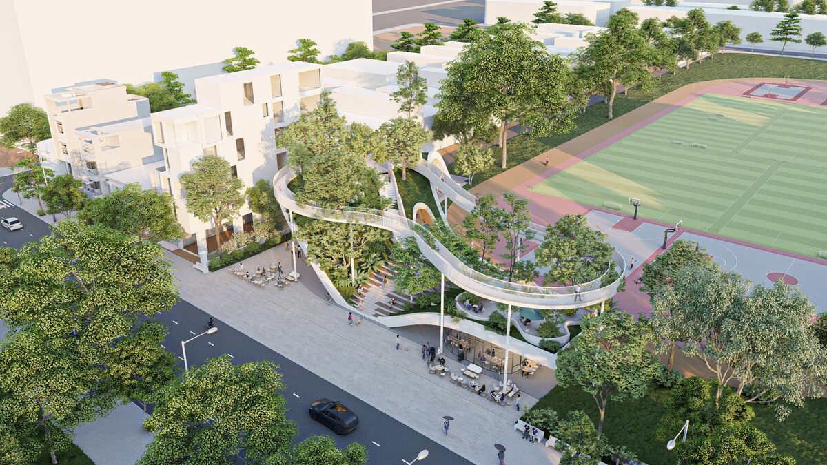 ギャラリーはLe Quy Don高校の運動場と隣接する公園のようなオープンスペースで。