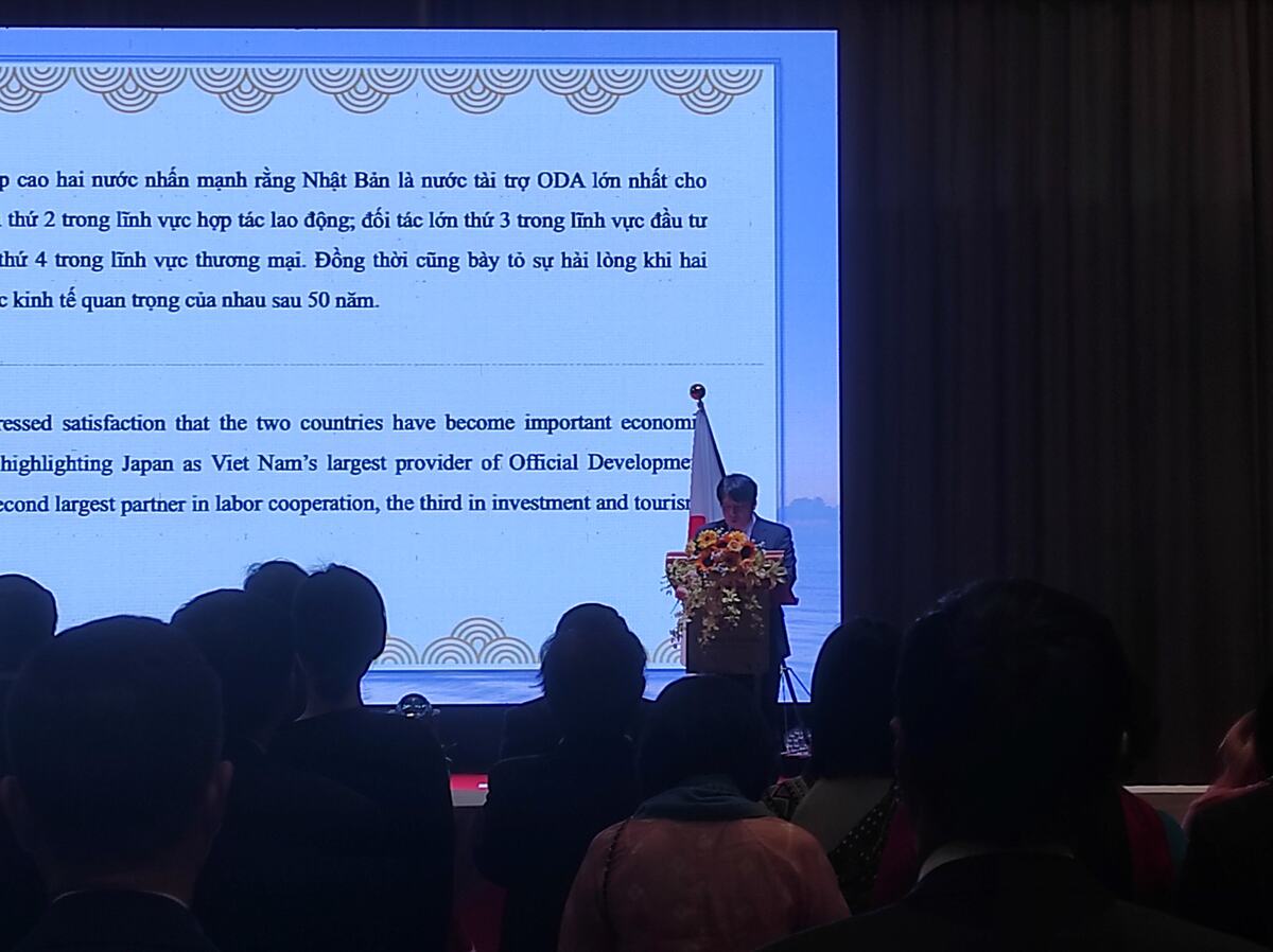 冒頭に行われた在ダナン日本国総領事館の矢ヶ部総領事の挨拶では、2023年の日越友好関係50周年で行われたベトナム中部を中心とした様々な活動を振り返り、両国間の人的交流もますます深まっていることに触れ、日本でのベトナム人コミュニティの急速な成長及びベトナムの訪人数も二万二千人に急増していることから日本のベトナム人とベトナムの日本人コミュニティは、両国持続可能な発展において重要な役割を果たすこと、ダナンはハノイやホーチミンに比べても日本企業の投資先として注目を集めており近い将来日本企業はさらに増える見込みがあること、また今後ダナンと各地との直行便が増加することで日本人観光客は着実に増加することが予想でき、ダナンは学生の修学旅行先としても最適なことから、これらの層も増加することが予想できるとも述べられました。