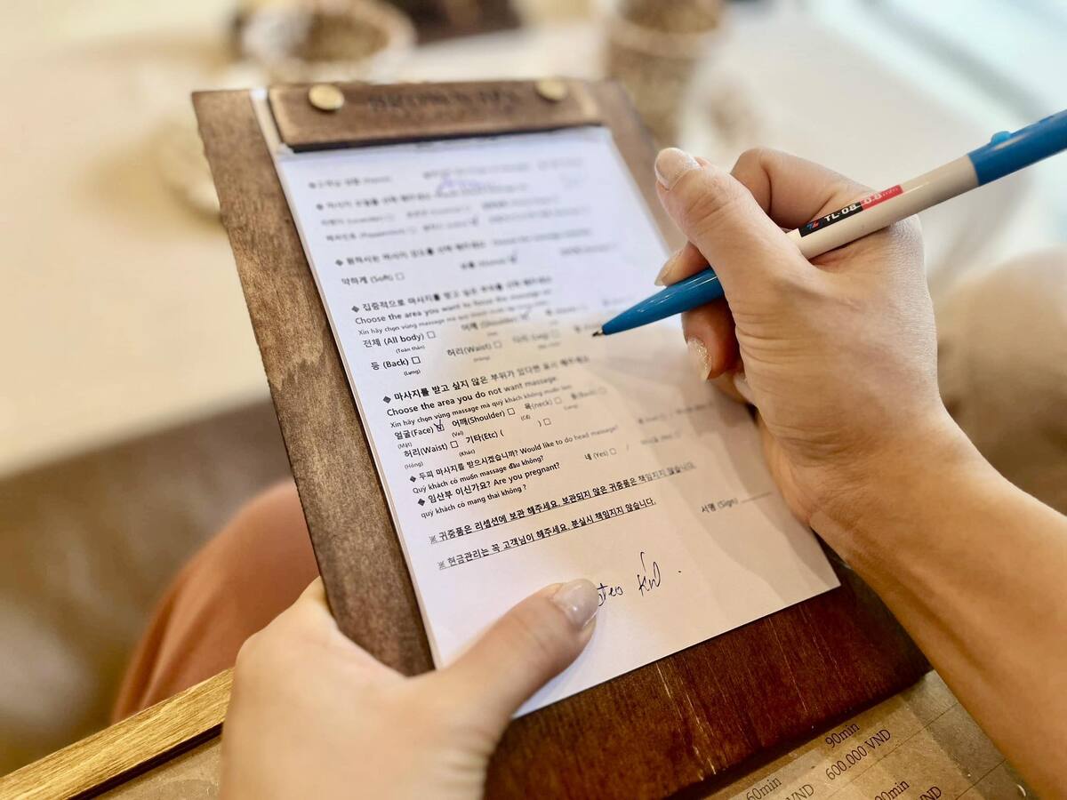 事前にヒアリングシートを記入したため、マッサージ中にあまり会話がなく、英語ができない方でも安心。