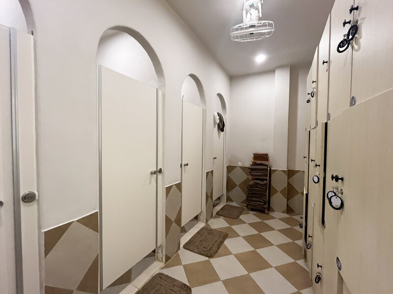 更衣室内にはシャワーブースが4つほどあり、その中で着替えたり、ご希望の方は無料でシャワーを浴びる事も可能です。