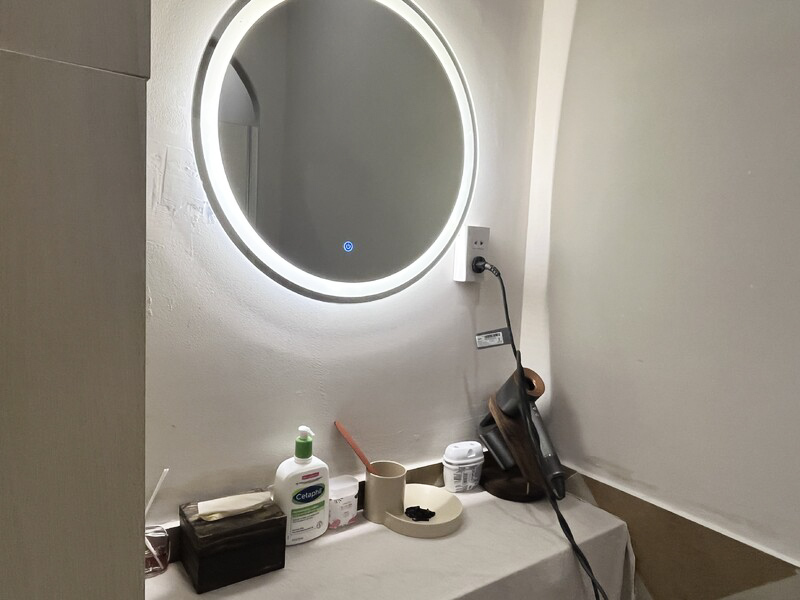 化粧台は一つのみですが、人気のダイソンのドライヤーが備えてあり高速で髪の毛を乾かすことも出来ます。帰国前に簡単にシャワーを浴びたいという方にも便利です。