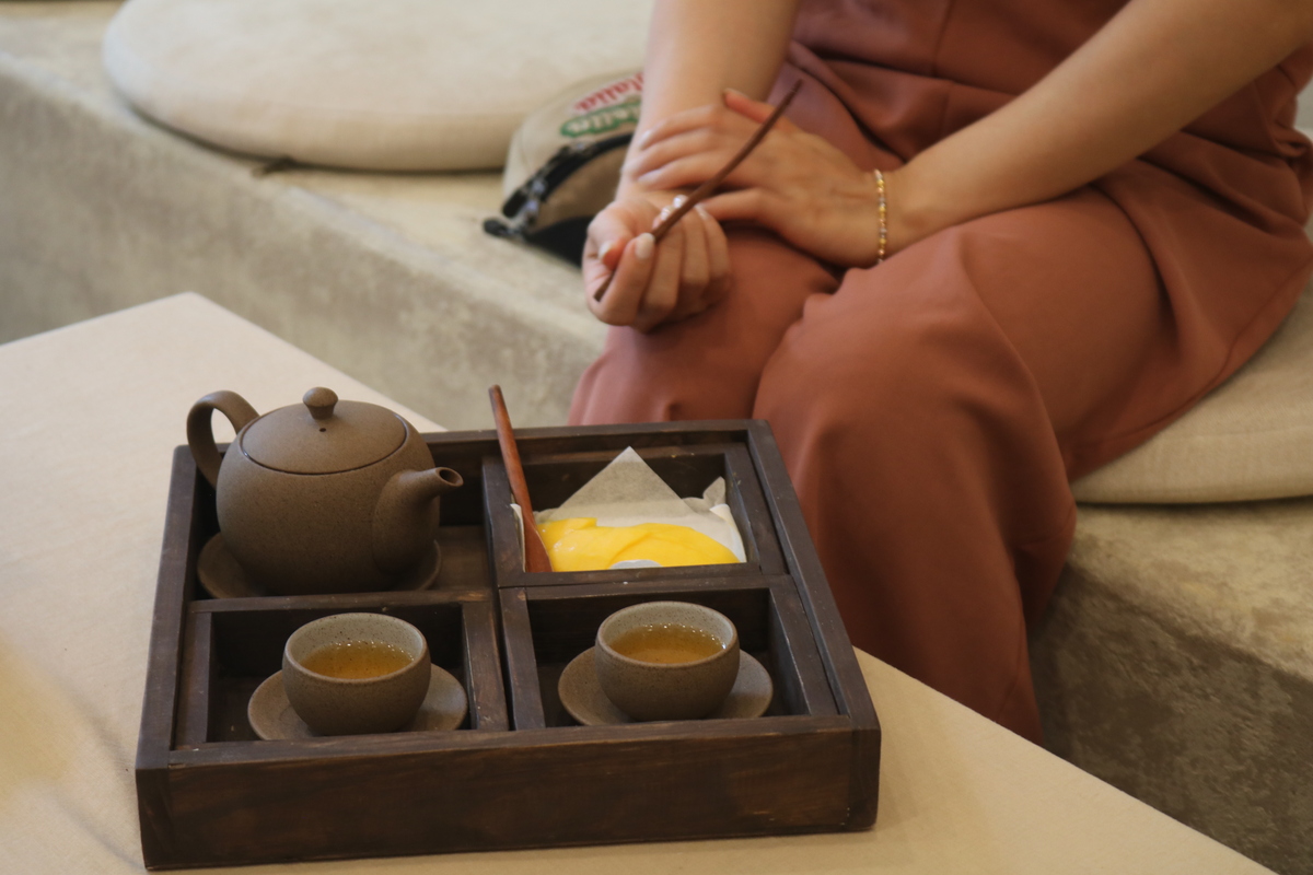 会計待ちの際には、ベトナムお茶やマンゴーのアフタードリンクを頂きました。