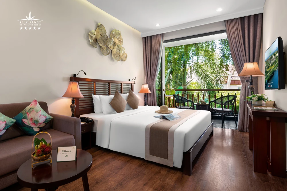 部屋のタイプは客室タイプとヴィラタイプの2種類あり、全室にバルコニー、バスタブが付いています。旧市街までは少し離れているものの、チャム島までの乗り場までは徒歩圏内であり、ココナッツボートに乗れるアクティビティエリアまでも車で数分ですので観光目的のお客様にも安心してご利用頂けます。