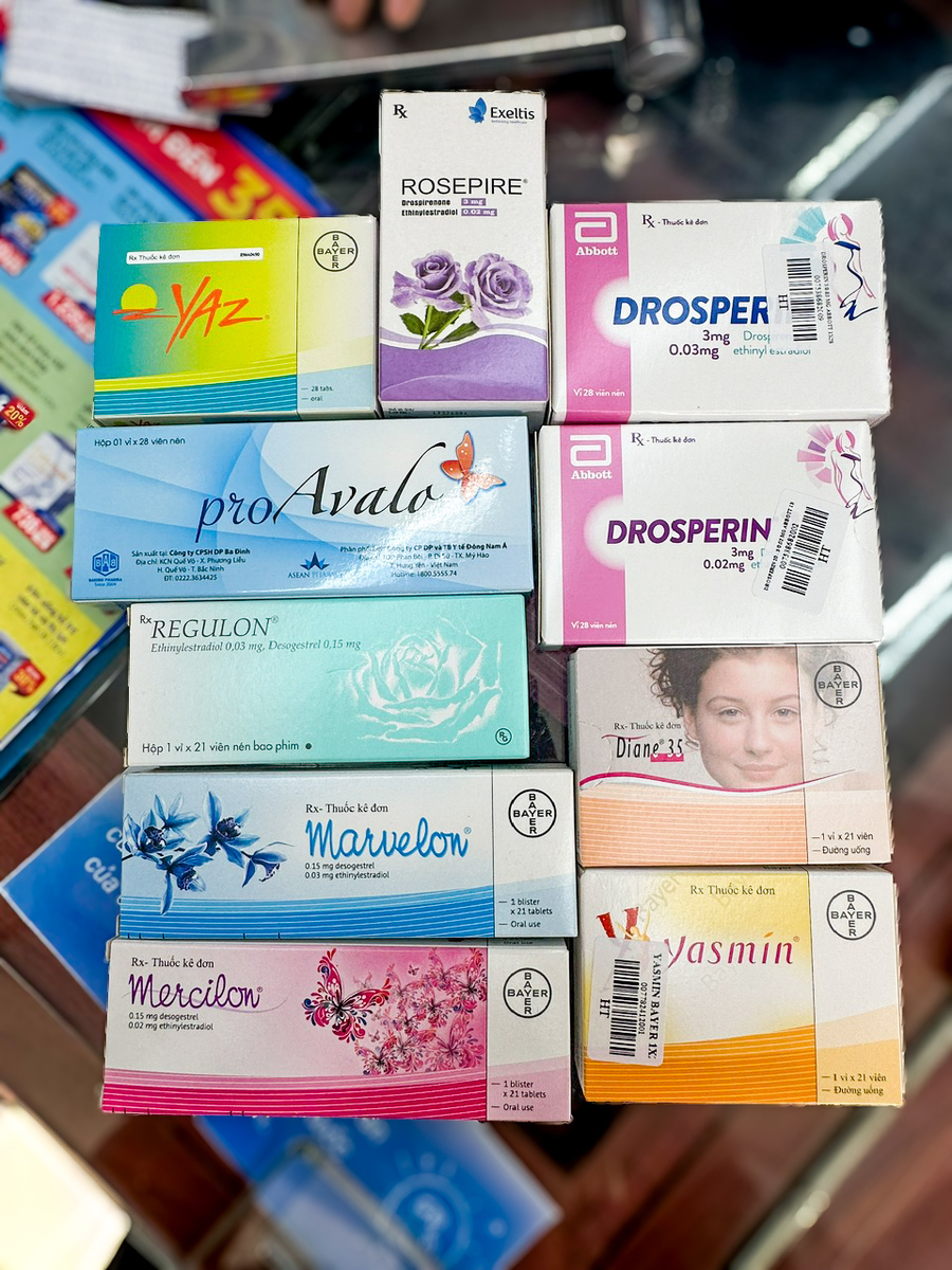 ベトナム産のプロアヴァロが20,000VND(約120円)、マーベロンは70,000VND(約400円)、ヤスミンとヤーズは200,000VND(約1200円)程度の価格帯で販売されており、海外製品の方が高価。