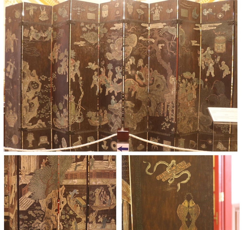 Bao Dai帝に送られたアオザイと中秋節をモチーフにした美しい木の屏風。