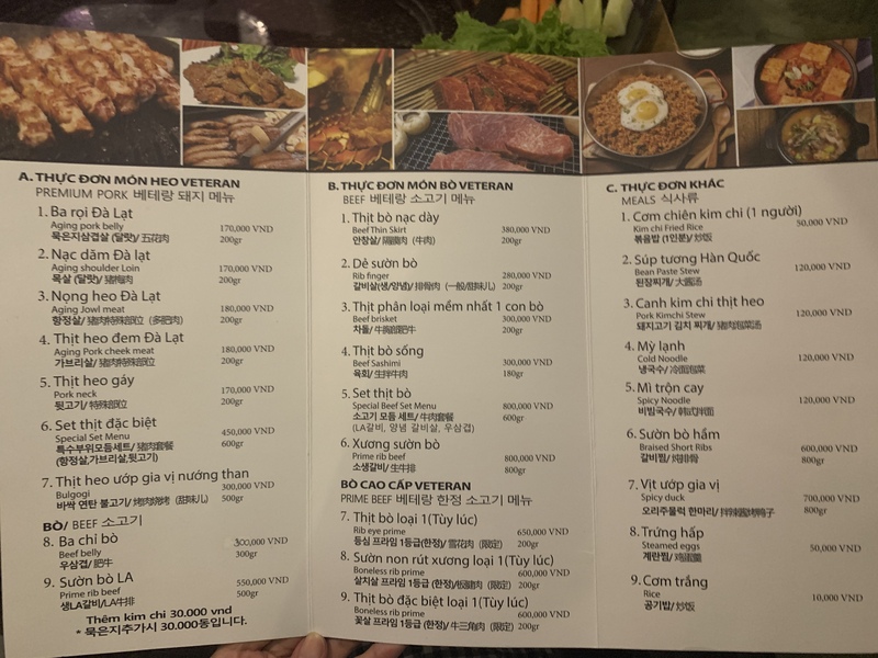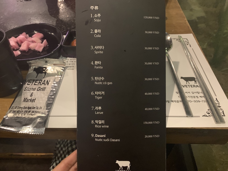 ベトナム語、韓国語、英語で書かれているのに、メニューはこれに収まっています。品数は決して少なくないのにコンパクトにまとまっているのがいいですね。