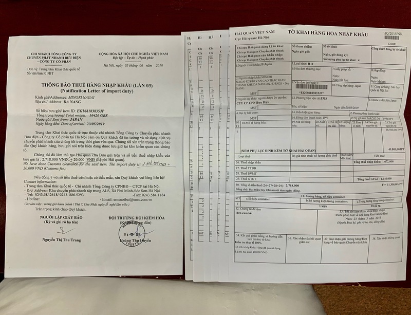 関税のトータルは2.718.000VND(約12,558円)でした。