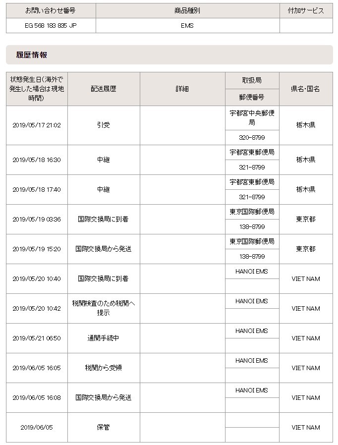その後はEMSの追跡サービスを使い、荷物の状況を確認をしましょう。