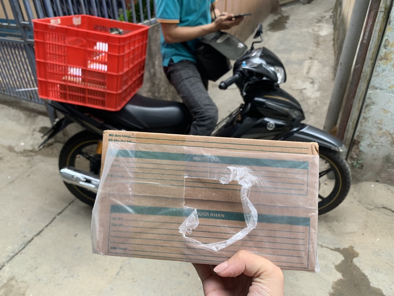 荷物にかかった関税2.718.000VND(約12,558円)を配達人に現金で渡し、荷物を受け取りました。