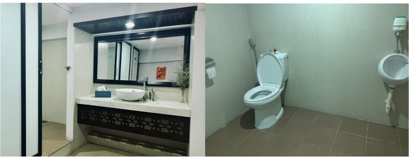 お手洗いの中の電球の色がもう少し明るく、ポスターなどが貼られていればなお良しといったところでしょうか。