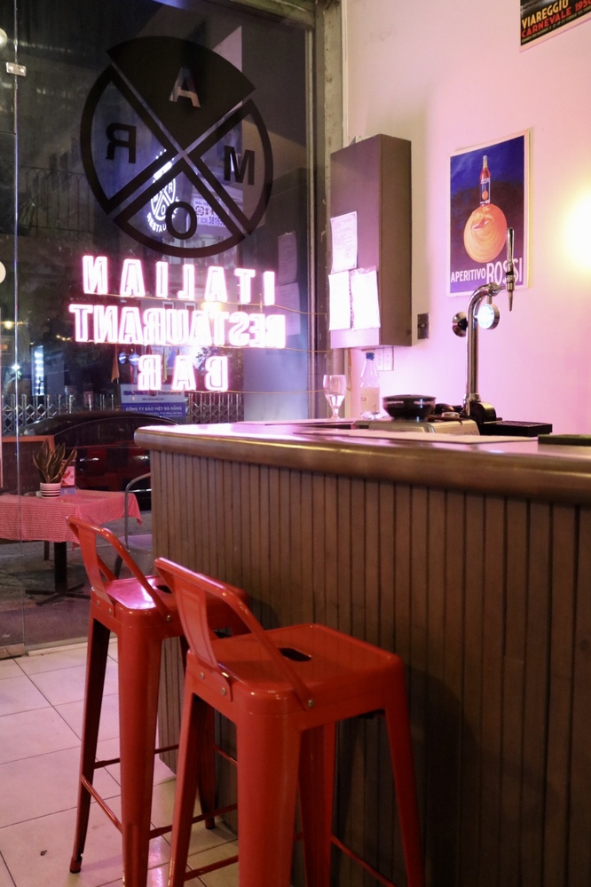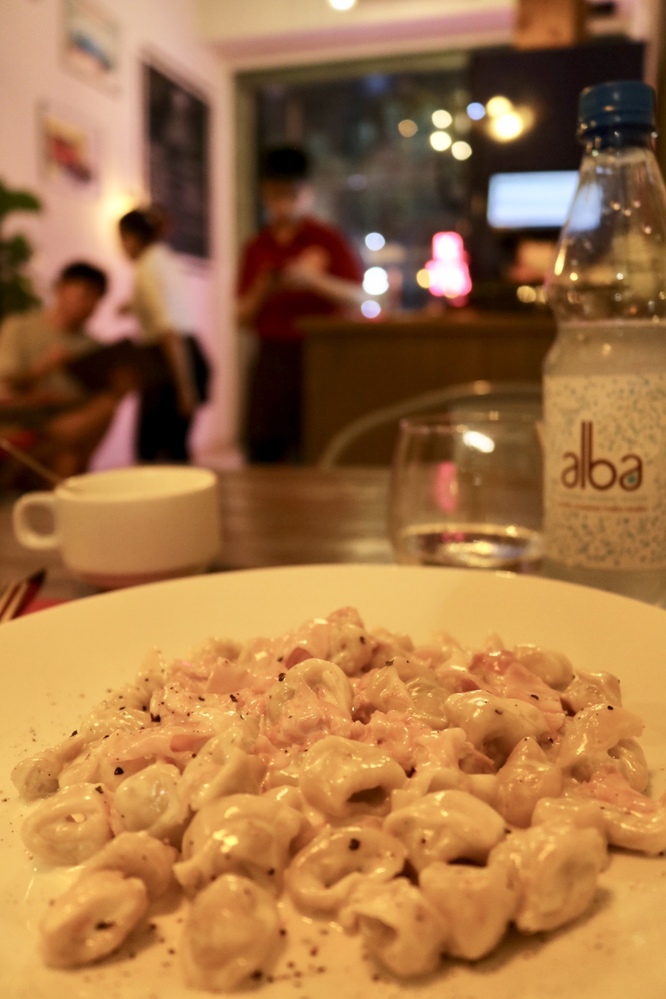食べ物はお手頃ですので、2人でパスタとピザとグラスワインを頼んで約640,000VND(約3000円)ぐらいには収まりそうです。
