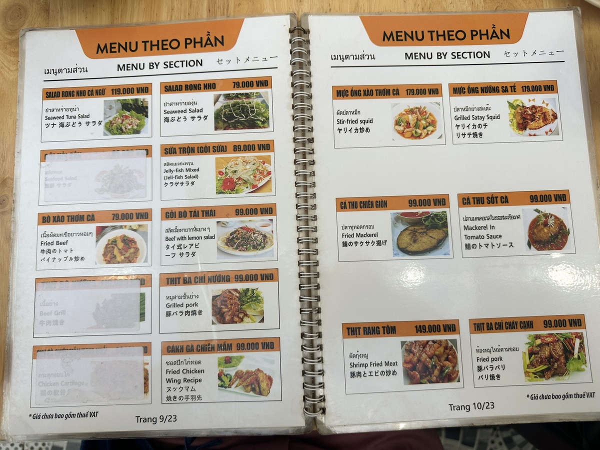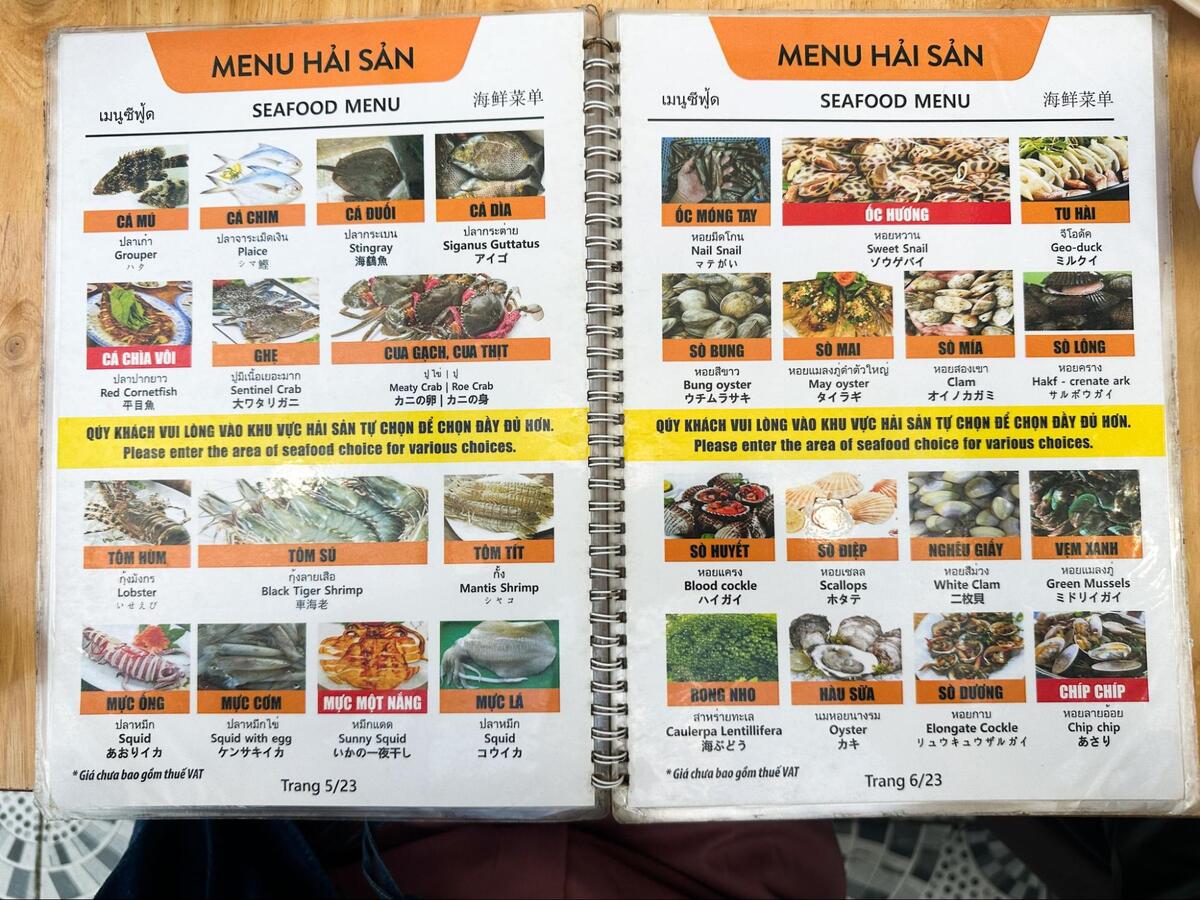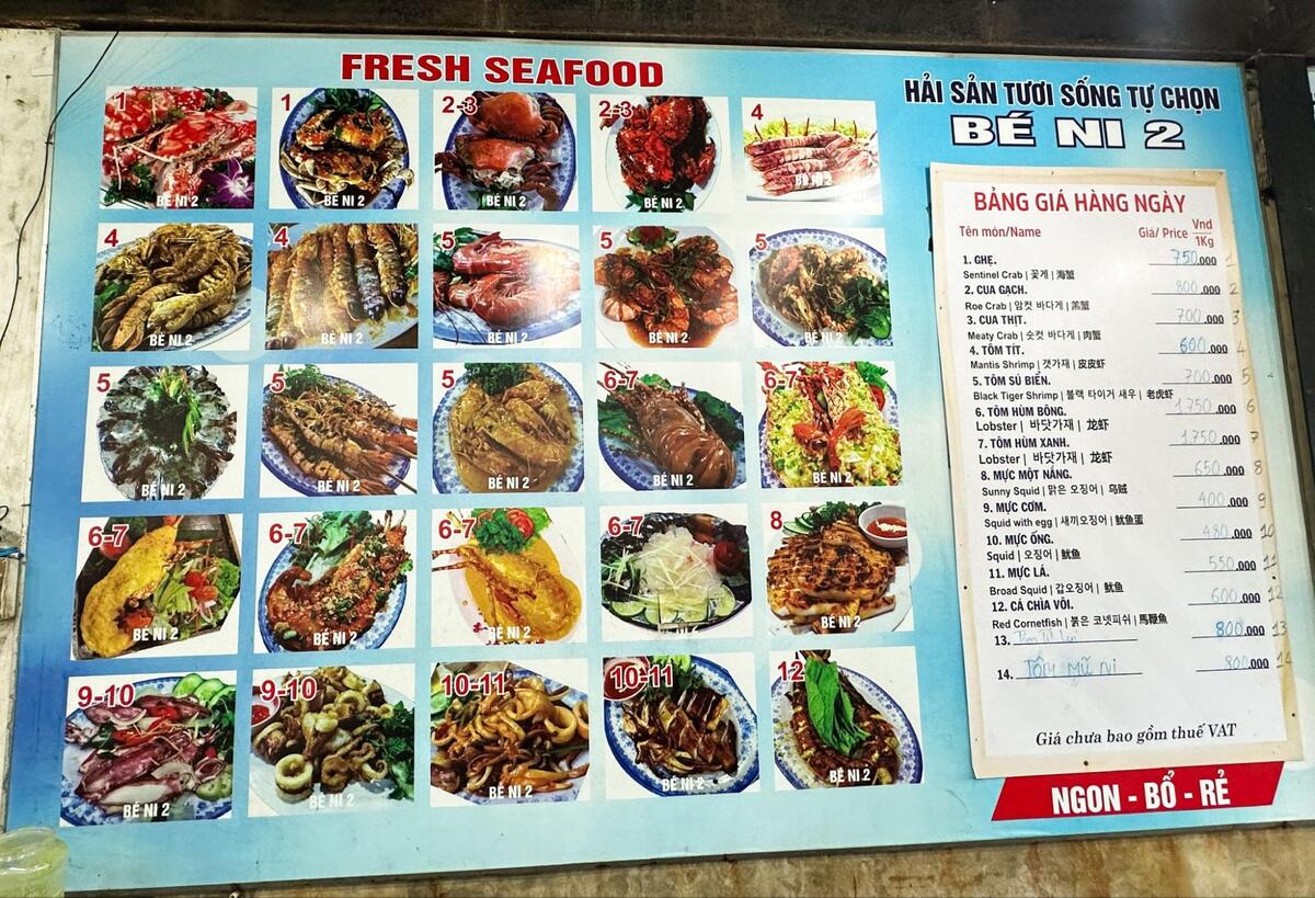 Hải Sản Bé Ni 2は日本語表記のメニューがあることや海沿いのホテルから近いこともあり、ホテルや海沿いでお店を探している方にとっては入りやすいお店かと思います。
