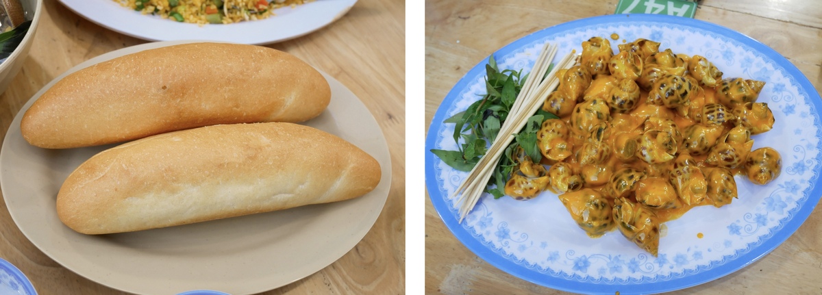 Ốc hương(ゾウゲバイ)という巻き貝です。パンも追加で注文して、ソースにつけて食べるのが定番。
