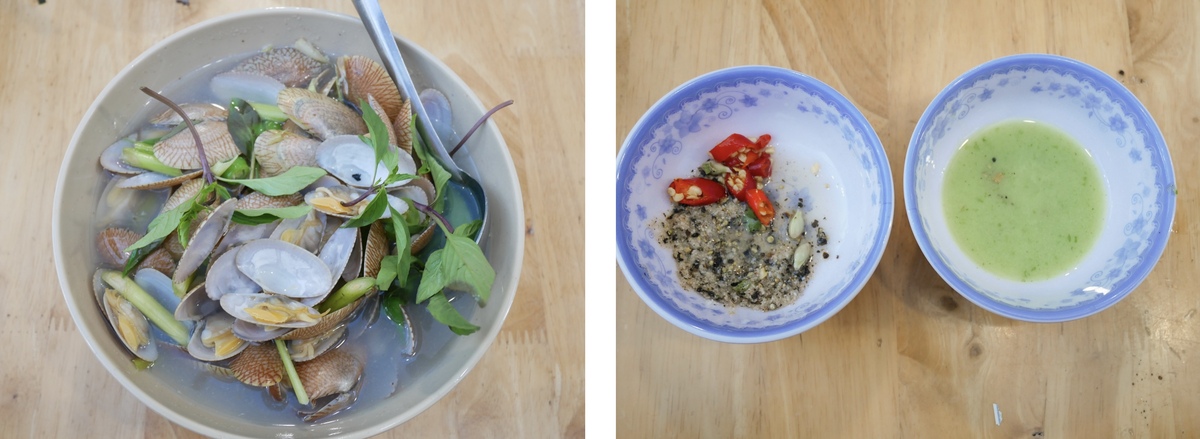 貝は、レモングラスで蒸し、ガーリックバター炒め、タマリンド炒め、レモングラスと唐辛子の炒めなどがあります。