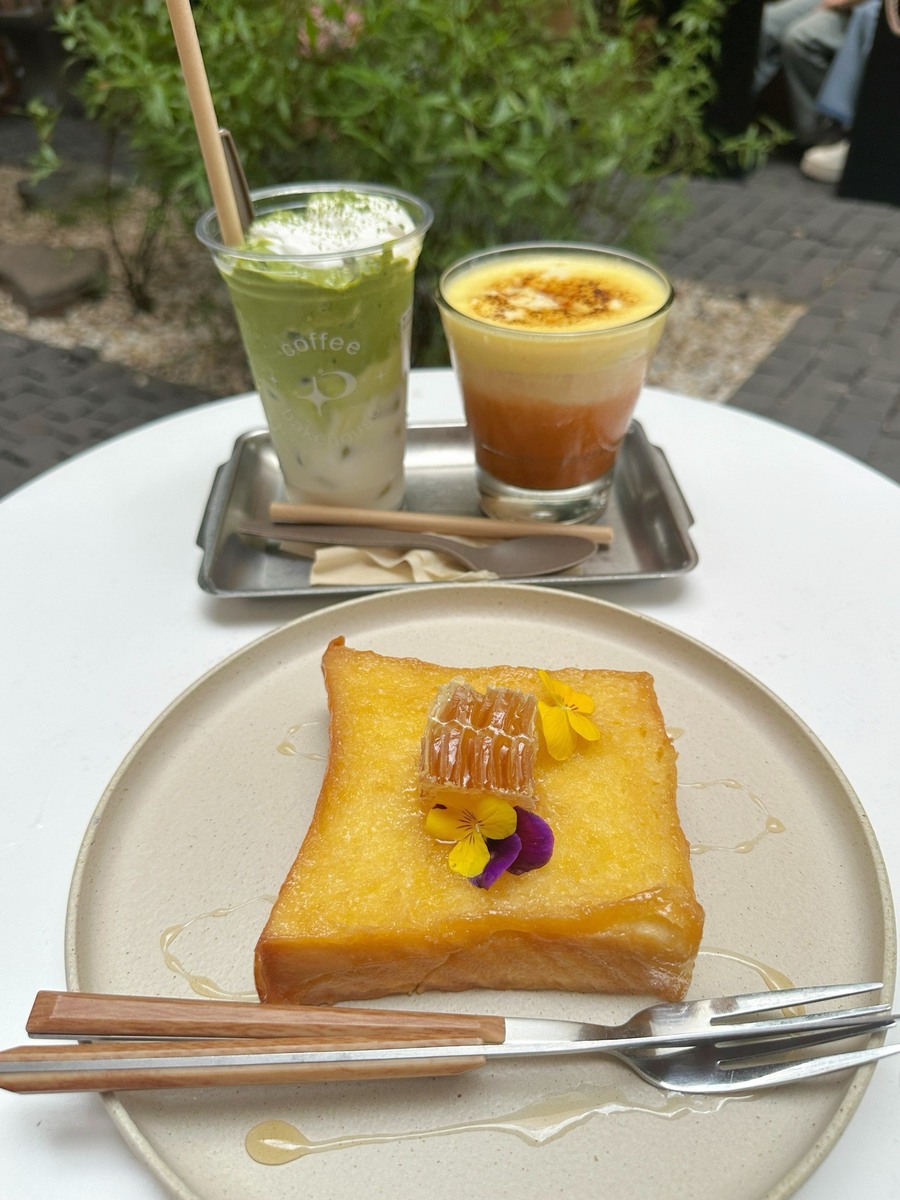 フレンチトーストは甘すぎず、ドリンクとよく合います。