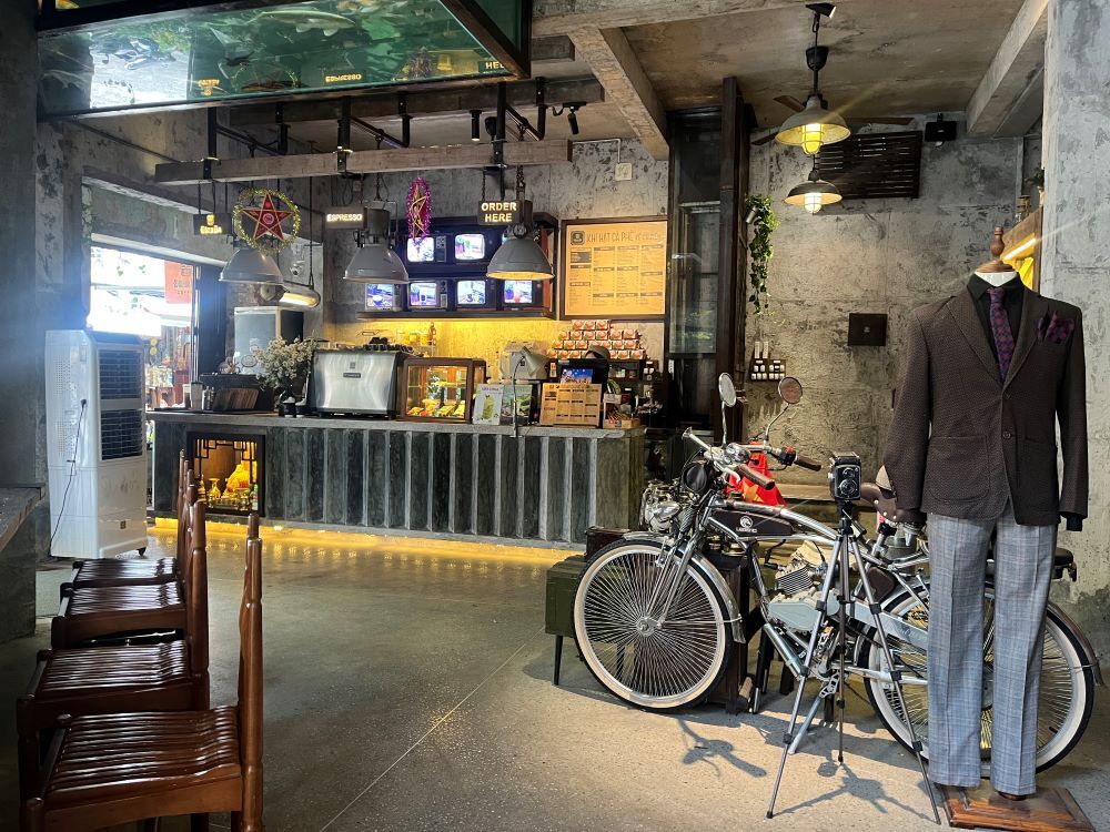 店内はヴィンテージ家具やアンティーク雑貨が並び、どこか懐かしいベトナムらしい空間が広がっています。