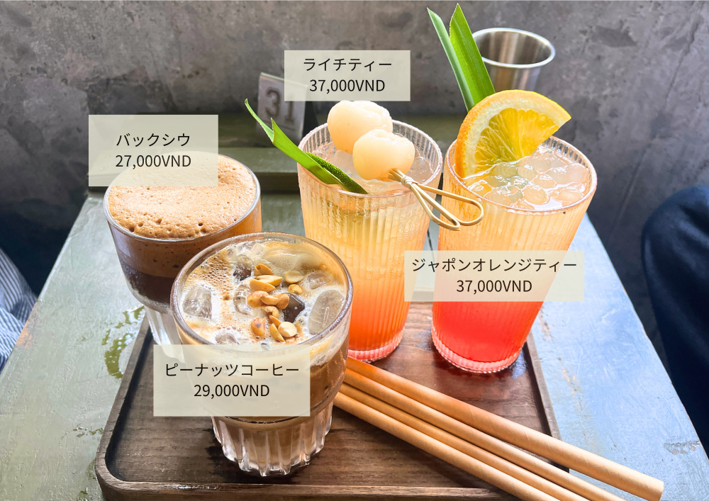 価格は1杯あたり29,000VND〜39,000VND(約170円〜230円)と、比較的リーズナブルなのもうれしいポイントです。