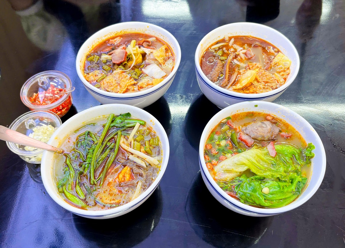 メニューは、ブンチャーやバインクオンなどの北部ベトナム料理に加え、中国・広西の名物料理であるBún ốc Liễu Châu (柳州螺蛳粉)、Bún Quế Lâm (桂林米粉)、Xiên nướng Trung Quốc (中国烤串)などが提供されています。