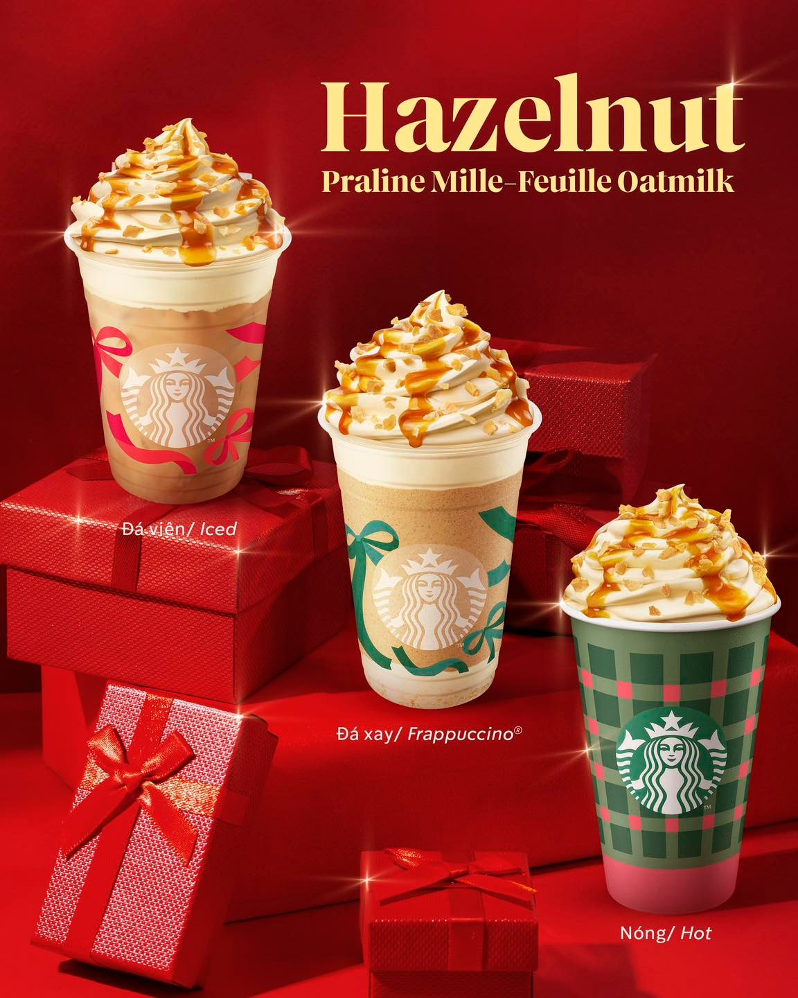2025年のクリスマスシーズンには、「ヘーゼルナッツ プラリネ ミルフィーユ(Latte/Frappuccino)」に加え、定番の「ペパーミントモカ」、「ジンジャーブレッド(Latte/Frappuccino)」、「トーフィー ナッツ クランチ (Latte/Frappuccino)が販売され、日本では味わうことのできない限定ドリンクが登場します。