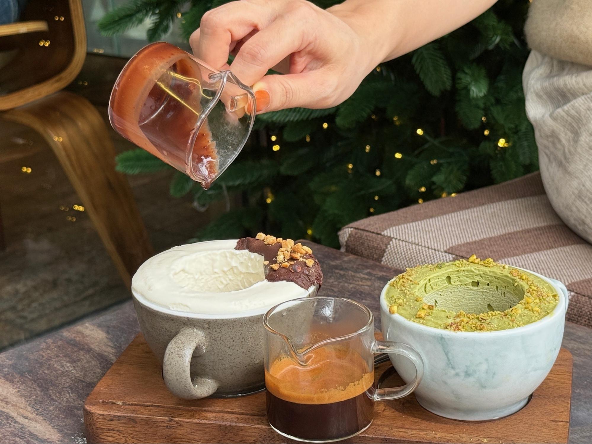 店内はクリスマスの飾り付けが施されているだけでなく、11月14日からは流行りのアフォガートとして、「チョコレートとアボカドアイス」と「エスプレッソとココナッツアイス」の2種類が販売されています。