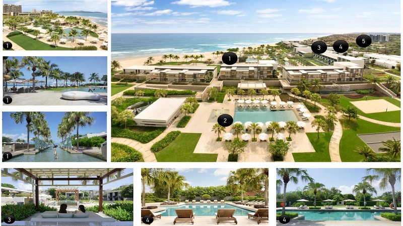 - 敷地内にある5つのプール 敷地内には合計5つのプールがあり、そのうちの4つのプールは全ての宿泊客、デイユース(客室なし)のお客様にご利用いただけます。 もう一つはハイアットリージェンシークラブのお部屋をご利用された方やクラブ会員、プラス料金をお支払い頂いた方にご利用いただけるプールになります。 更にヴィラは全室プール付きで、プールに困ることはありません。 プールはどのお部屋からも徒歩5分程度で着くような設計になっており、いつでも楽しむことができます。