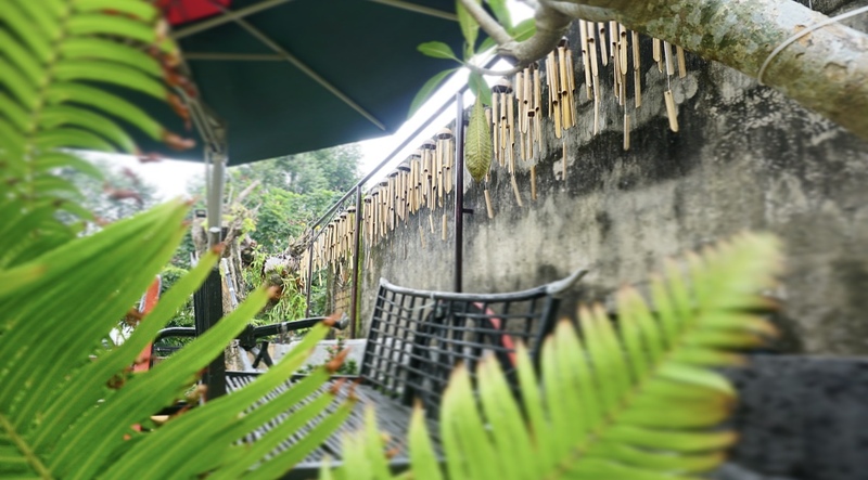 中に入ると聞こえる竹風鈴の優しい音色とアジアンテイストの建物