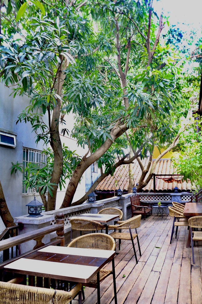 レストランの建物に使用されている木はベトナム南部から、カンボジアから持ってきたという庭にある木はお客様を出迎えてくれます。