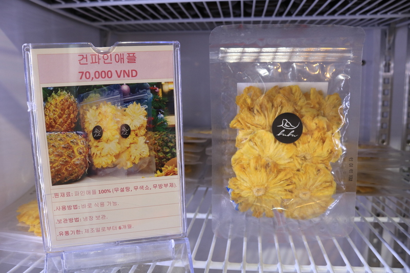 お土産に、パイナップルのドライフルーツやお芋のドライチップス、人気のココナッツクッキー、おつまみなどのオリジナル商品も一緒に購入することができます。