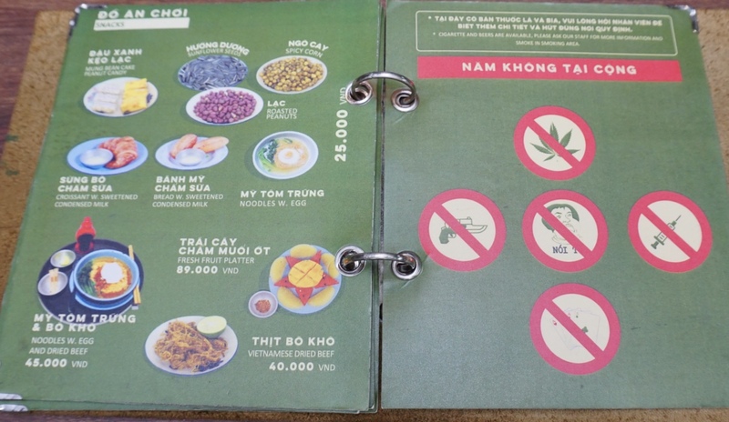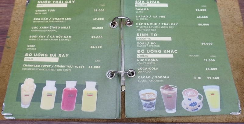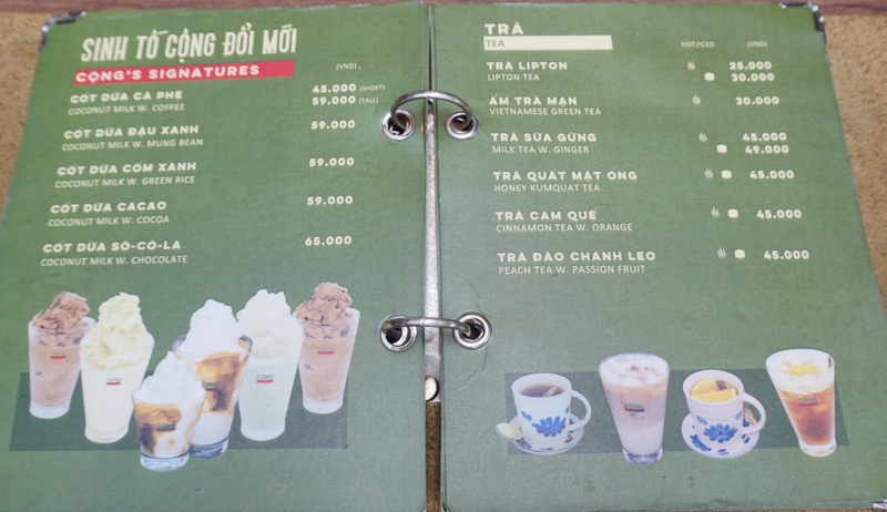 コーヒー・お茶・スムージー・お菓子等の軽食まで、25.000VND(約120円~)楽しむことができます。