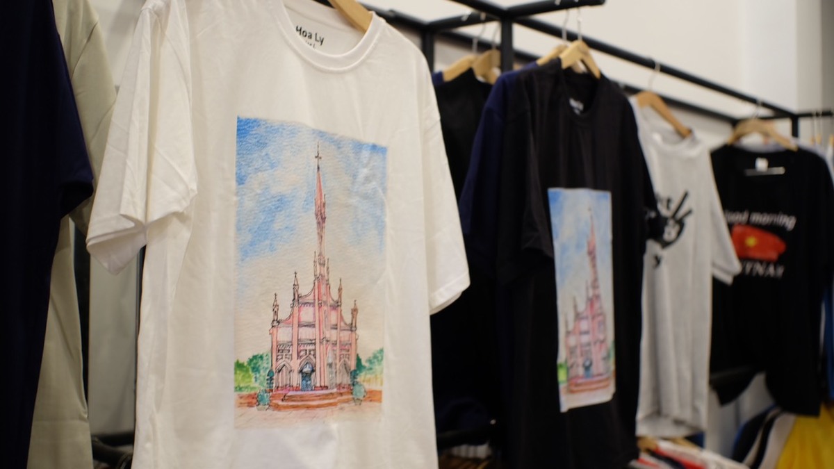 1階には、定番の刺繍バッグ、刺繍ポーチ、置物系、キーホルダーやマグネットなどの小物類。女性に嬉しいアクセサリーや街歩きの際に来たいアオザイ。老若男女問わず着用可能なTシャツなどが置かれています。