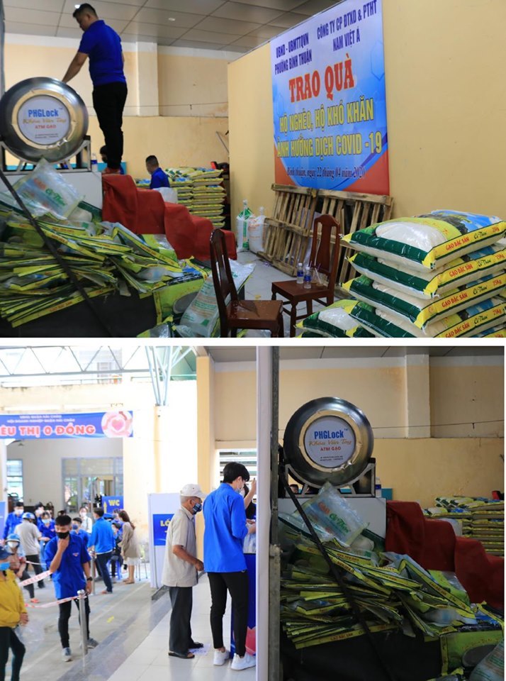 今回は「米を引き出す機械」が通称ATM gạo(:米ATM)と0ドンスーパー*という食料品を配布する活動のご紹介です。