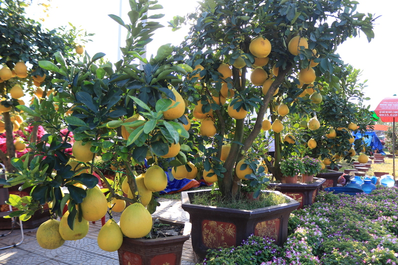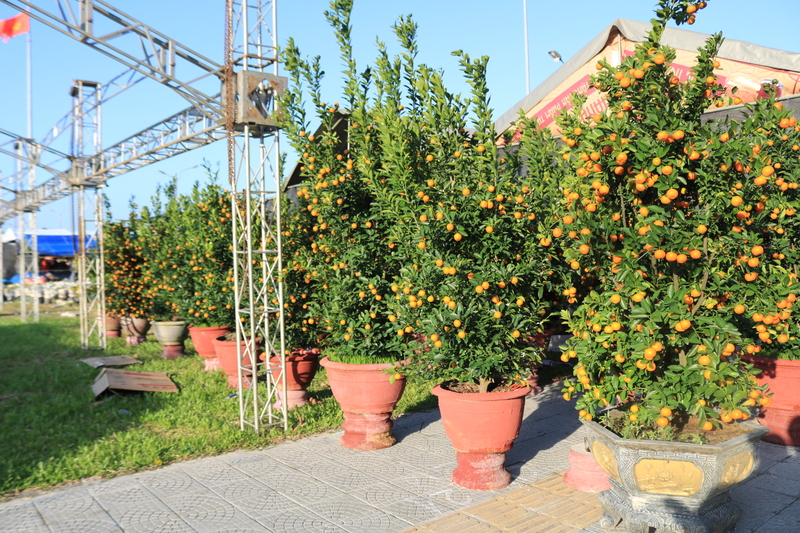 キンカンの木は上記の菊と同等にたくさんの量が町で販売される。テトの期間見かける機会が多い植物の1つ。