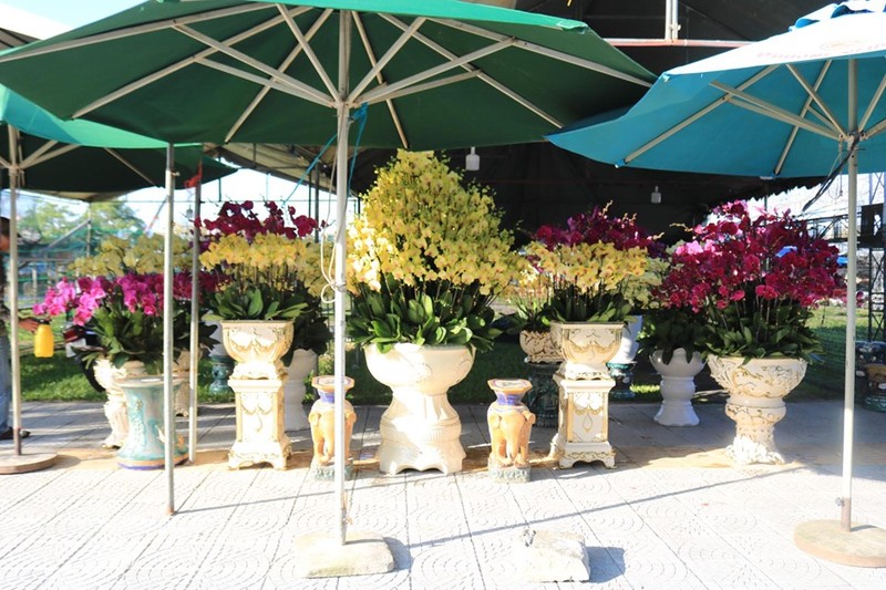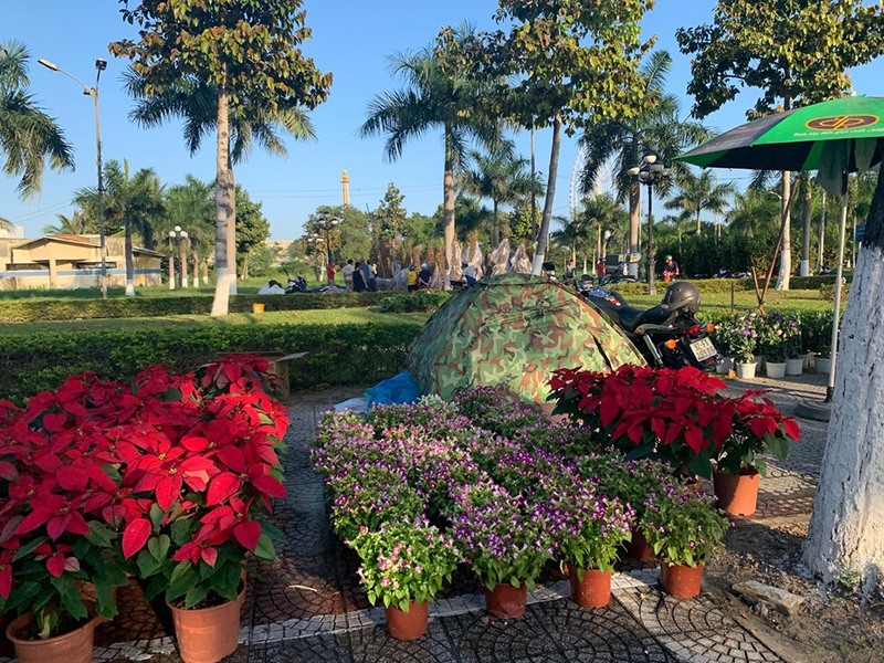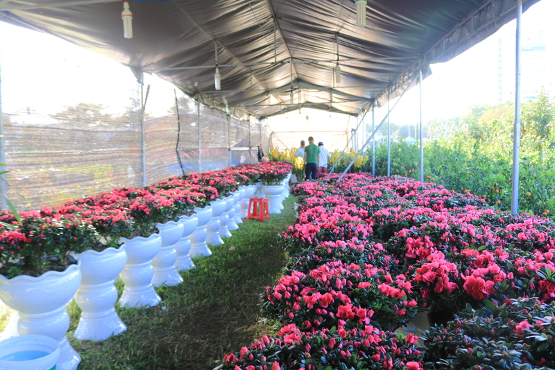 花市場では日中は日差しが強いため、テントを建てていたり、簡易小屋のようなものも建てテト前の一週間強に渡り、お花を売ります。