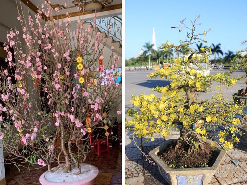 南部では黄色梅のhoa mai(ホアマイ)、北部ではピンクの桃のhoa đào(ホアダオ)が飾られます。