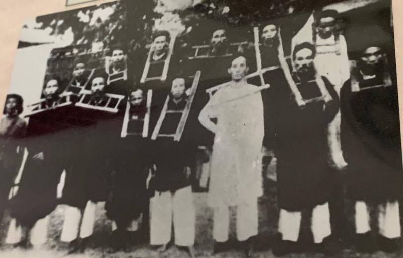 こちらもホーチミンさんの写真と思われます。フランス領時代の税金が高く、その反対運動をしたことによって捕まっている様子の写真です。