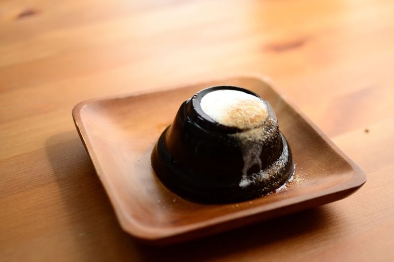 そのあと火に移し変えて、沸騰直前でゼラチンを入れてよくかき混ぜ容器に移し替えます。