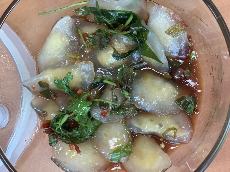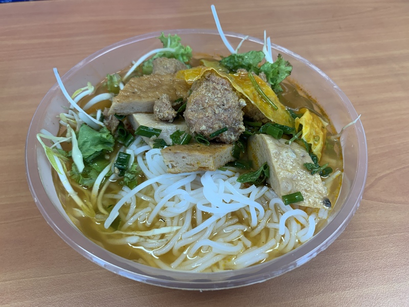 蟹と魚のすり身と米粉の麺。ラーメンのように汁がたくさん入っているのが中部流。