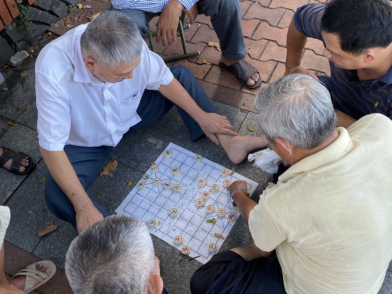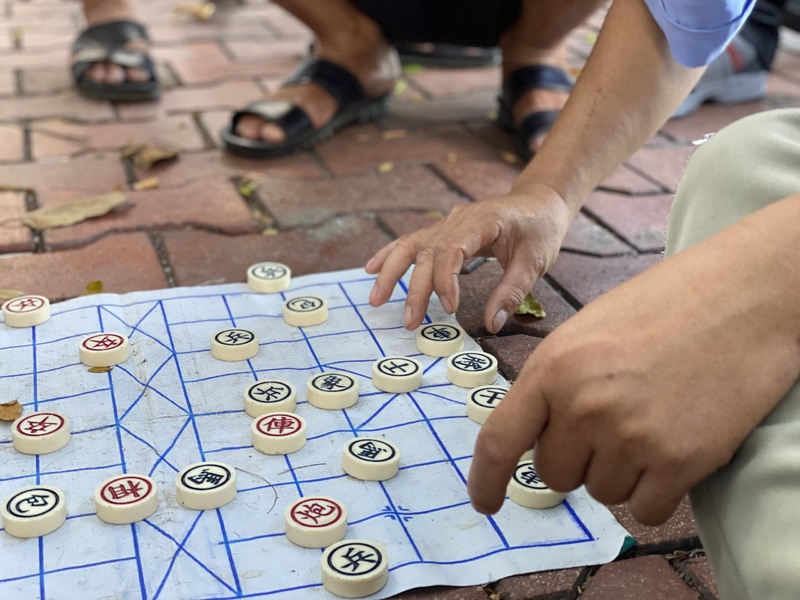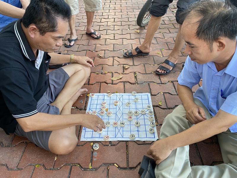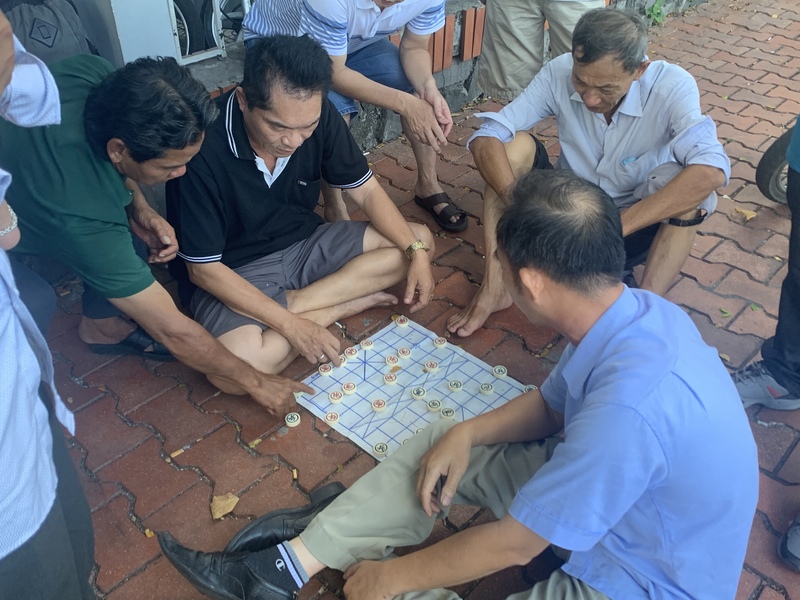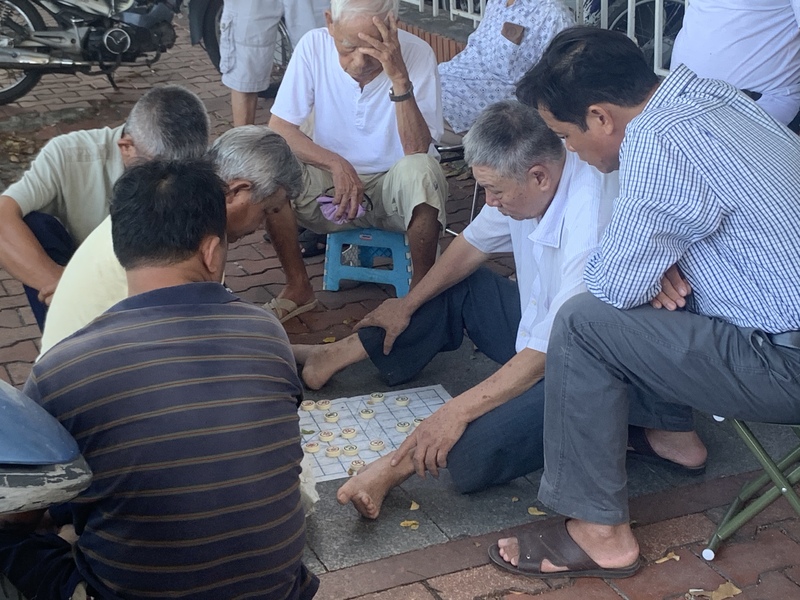 平日休日関係なく昼間からcờ tướng(中国語:シャンチー)に熱中している人たち。