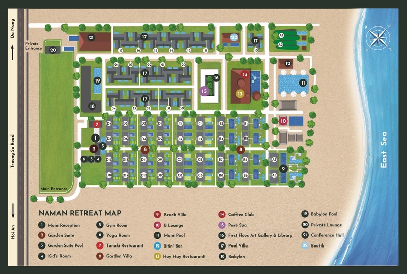 空港から約30分。ホイアンへ向かう道の途中のビーチ沿いにひっそりと佇むナマンリトリート。