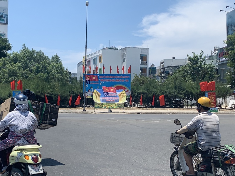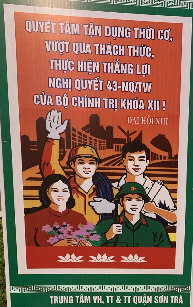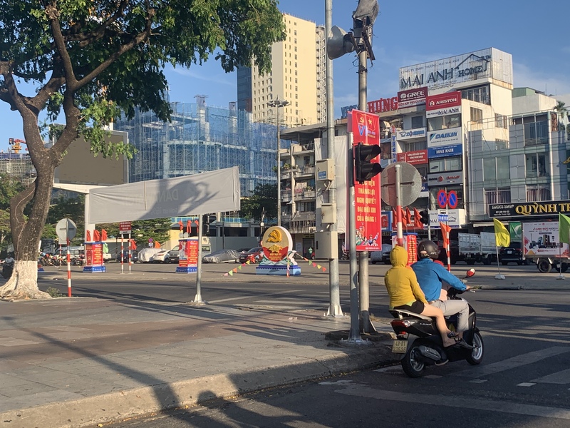 現在ベトナムでは、共産党第13回全国代表大会の宣伝活動が開催されており、ダナンでも街中のいたるところにポスターや横断幕が貼られ、広場にはモニュメントが設置されています。
