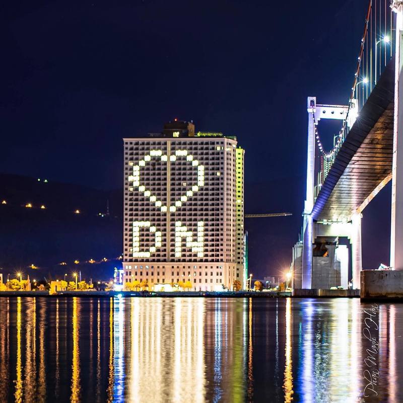写真引用:VnExpress「Da Nang buildings radiate love in a time of semi-lockdown」(8/3参照)